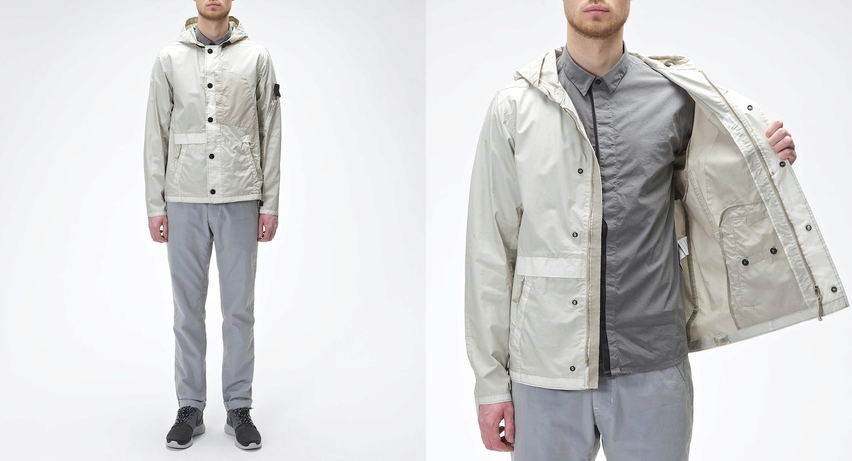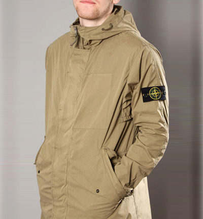 - Raso Gommato. This model can be called the first of the Stone Island waterproof jackets. She was sewn of cotton satin with a protective polyurethane coating. The jacket turned out light and very stylish, in the spirit of military.