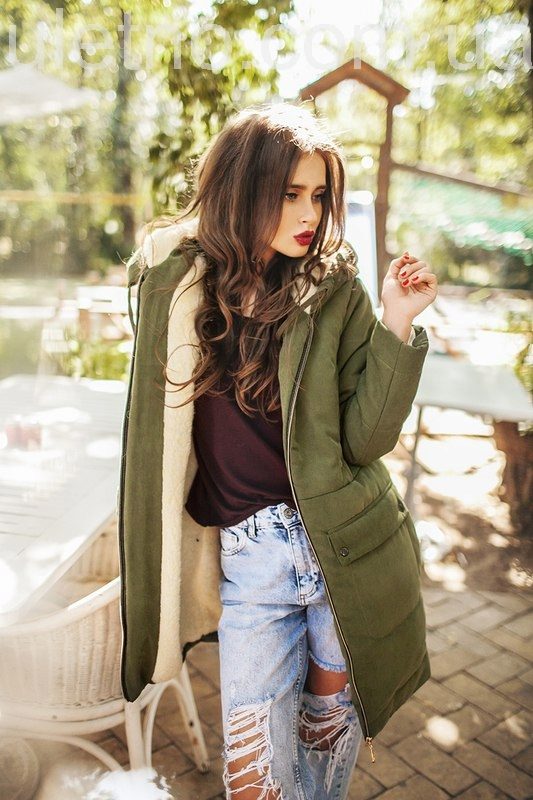 Khaki. This color is the absolute trend of the season. In this shade you can find any element of the wardrobe, and the park is no exception. Moreover, the khaki jacket has already become a classic.