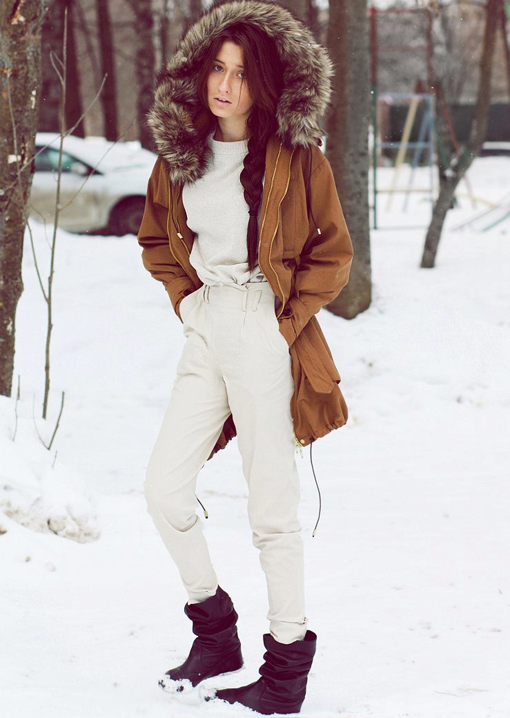 Doubts arise only when combining parks with classic wardrobe elements. Flared trousers or stiletto boots. But with the right combination, such options have places to be, especially if the park is made in classic color and with fur.