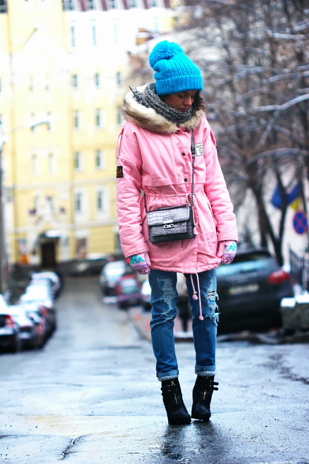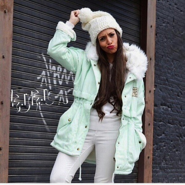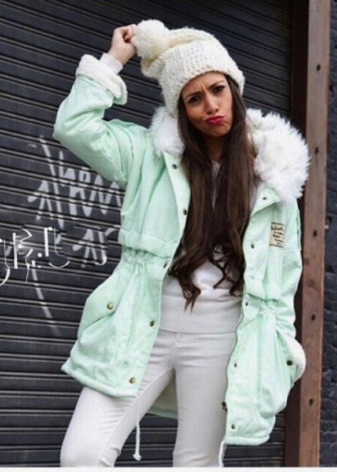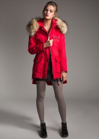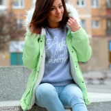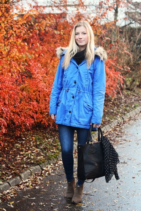 Most often, girls prefer to wear a bright park with dark leggings or blue jeans. Do not dwell only on these options. Lightweight jacket will look great with a dress and a skirt. Just avoid being too long.