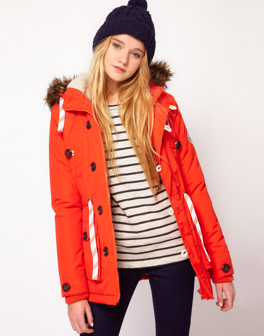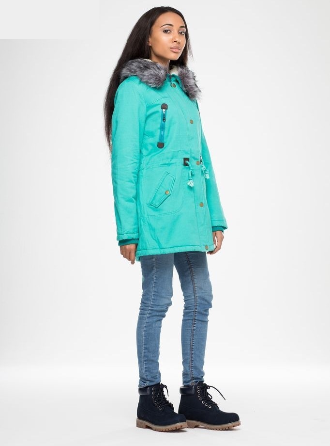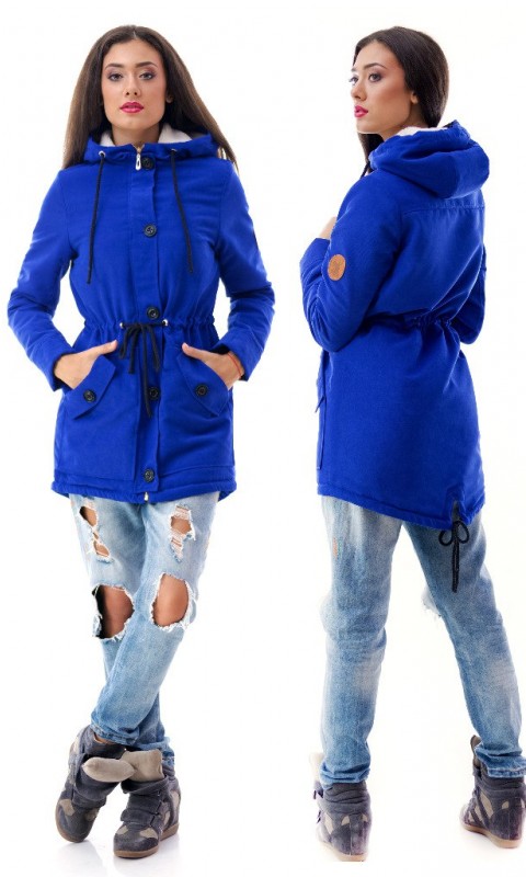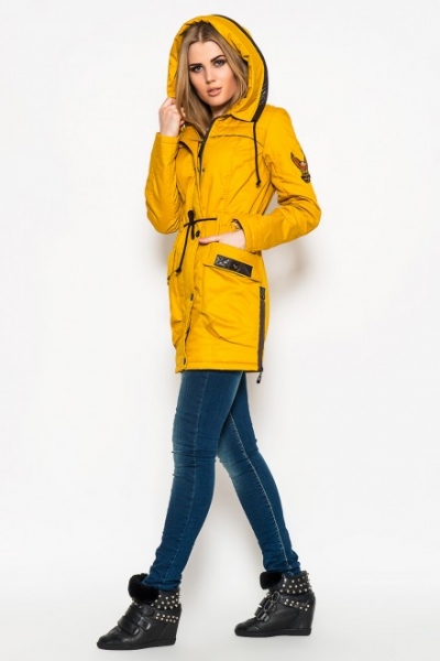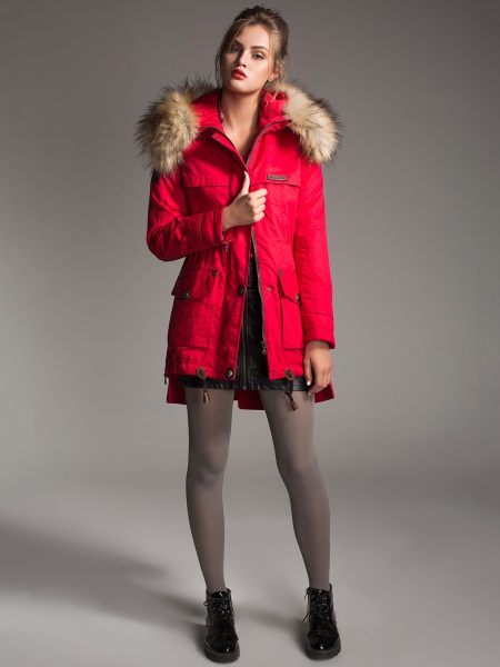 A large number of pockets and accessories makes the park interesting and functional. The deep hood saves from the wind, and the traditional lace, which tightens the waist and bottom of the jacket, helps to make the figure more elegant.