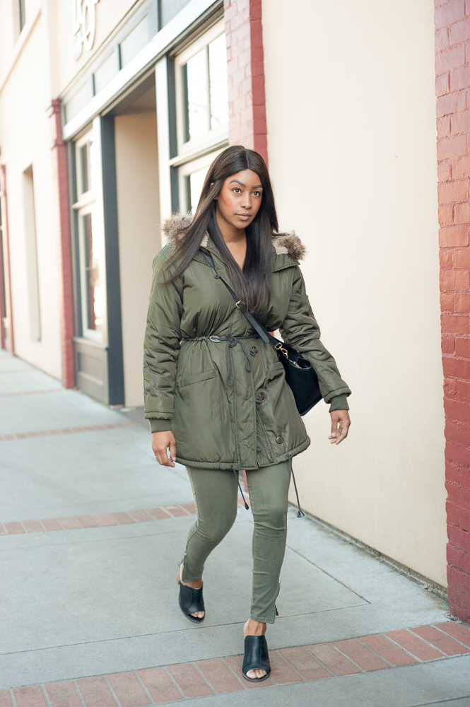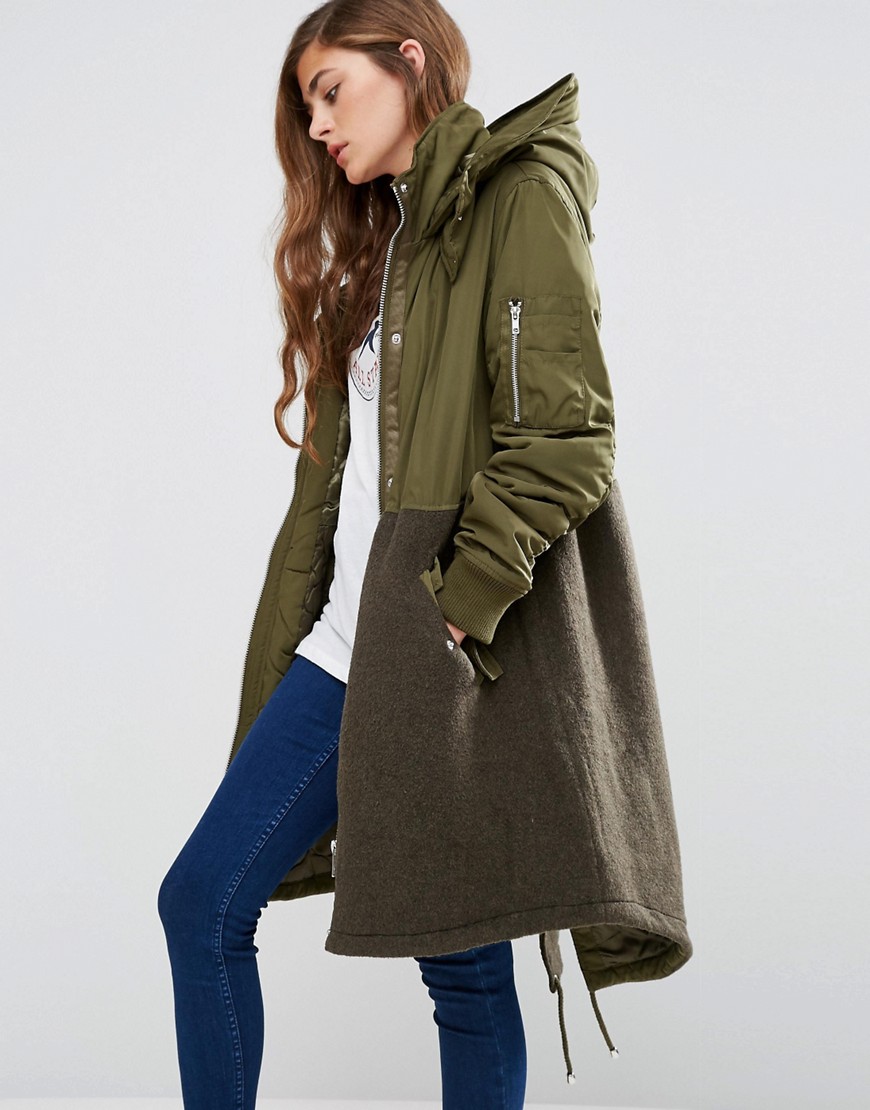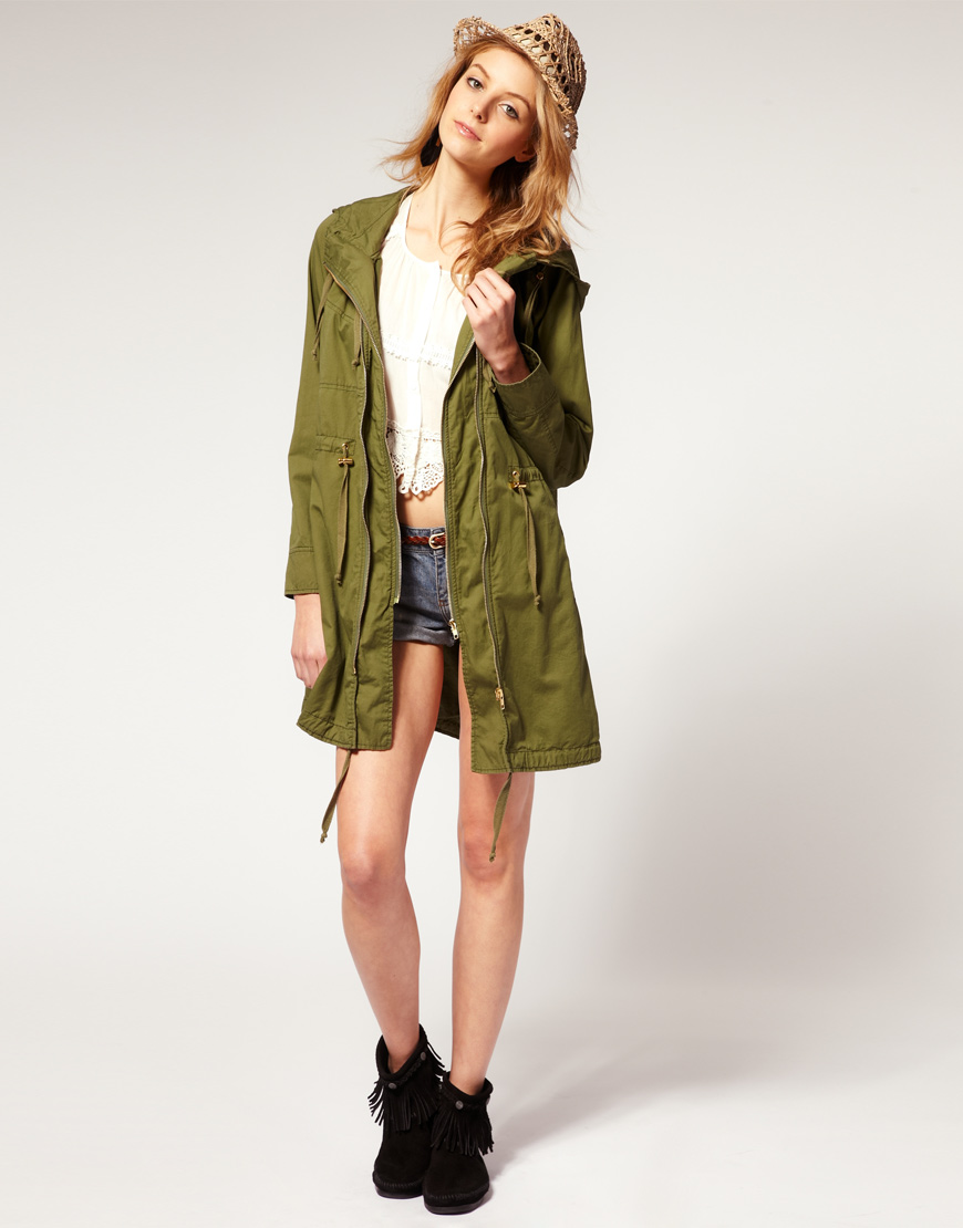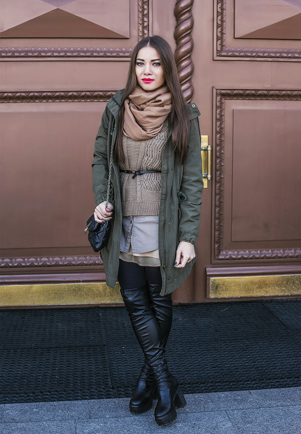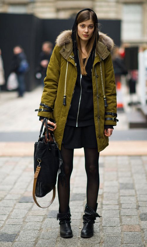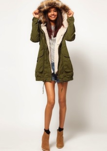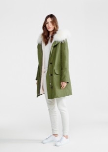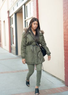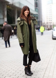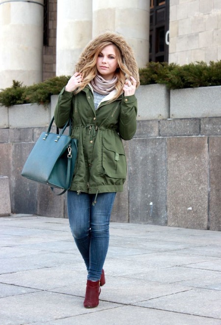 For the green park is characterized by its versatility in the approach to different styles. Its most popular usage is the casual style. In this case, skinny jeans or leggings, comfortable shoes such as sneakers, uggs will suit the jacket park.