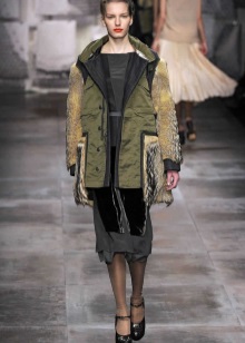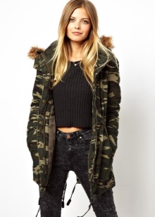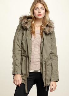 For jacket parks, muted colors in military style remain relevant, brighter ones will go beyond the style. The material used is rather coarse fabrics, due to which practicality of the product is ensured. The hood with fur trimming provides reliable protection from the wind.