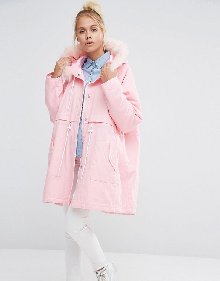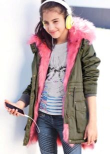 When, as at a young age, wear a park of pink? Among adolescent girls, delicate pastel shades of pink are in demand, giving them tenderness and charm. Such parks look particularly well in combination with a white hat and scarf.