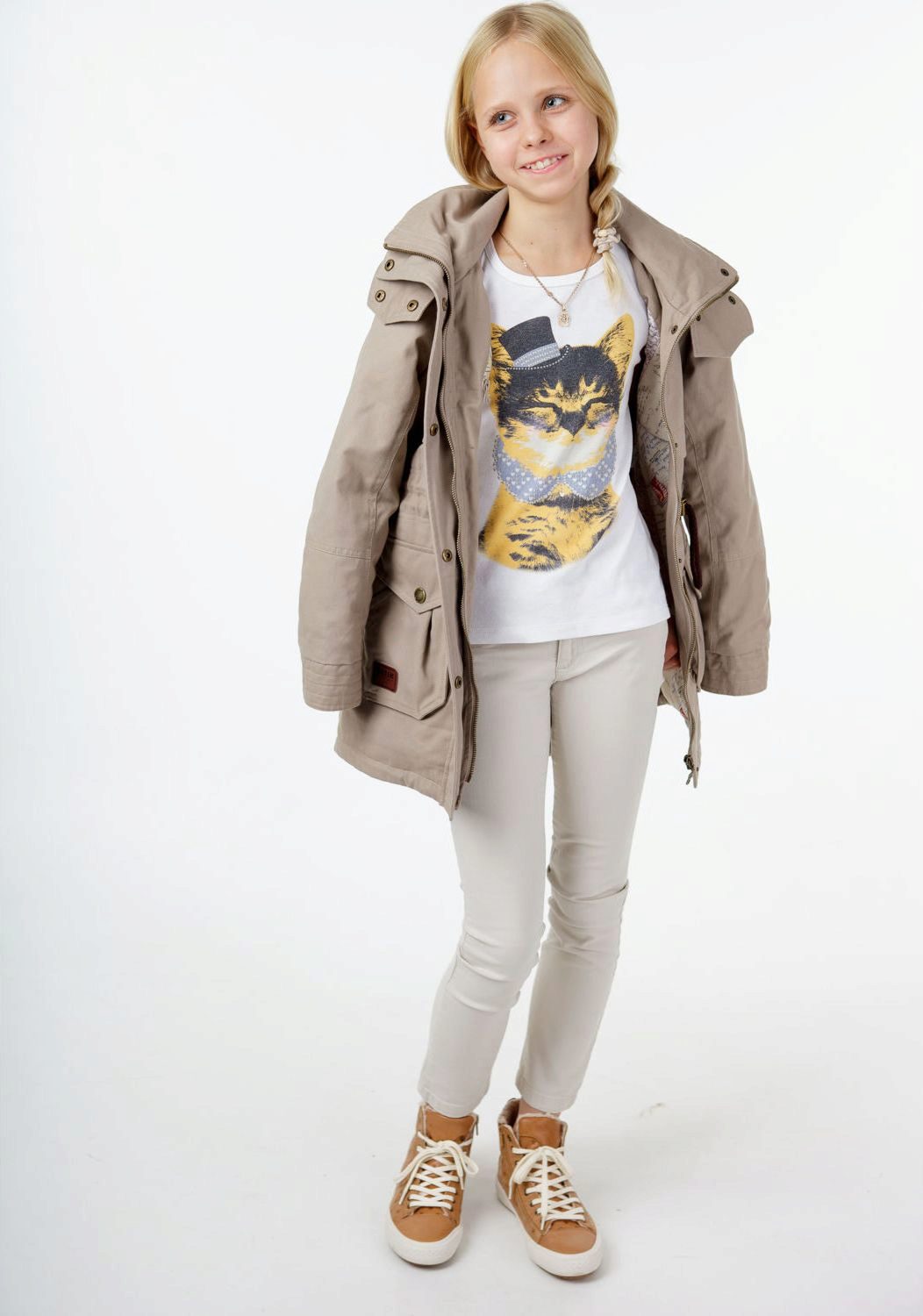 They are characterized by simplicity and convenience of cut. Monochrome models or parks with an interesting pattern are popular among teenage girls. This may be a cell, floral or camouflage print.