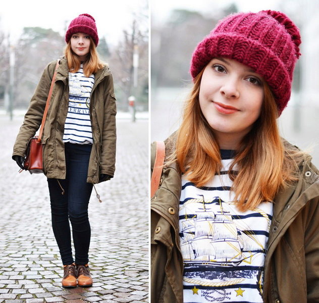 Red parks look great on teenage girls, they attract attention to themselves, help to look bright and stylish. Red parka looks great with military-style clothing, you can also wear it to school with a warm pantsuit or wear jeans.