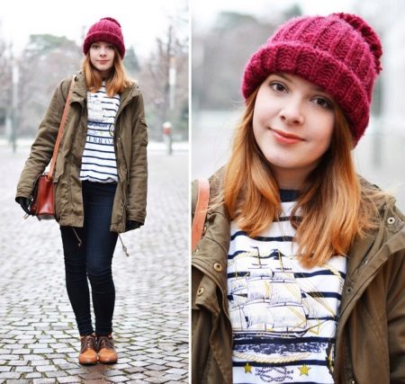 Do not forget the hat, scarf and gloves in a contrasting color! It will not only warm, but also make the image complete and complete.