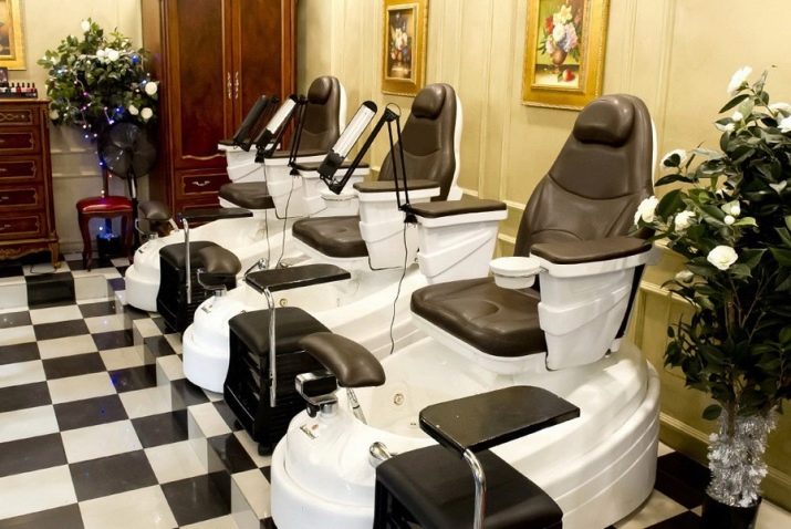 If space allows the room, then you can buy a whole spa complex.Such designs are equipped with everything necessary; they perfectly fit into any design interior, bringing a zest to the novelty. Models are made from environmentally friendly materials. They also save water and electricity. When choosing a pedicure chair, it is important to take into account the opinion, wishes of masters with experience. Depending on the type of pedicure, you may need different models or one model, but with all the necessary functions.