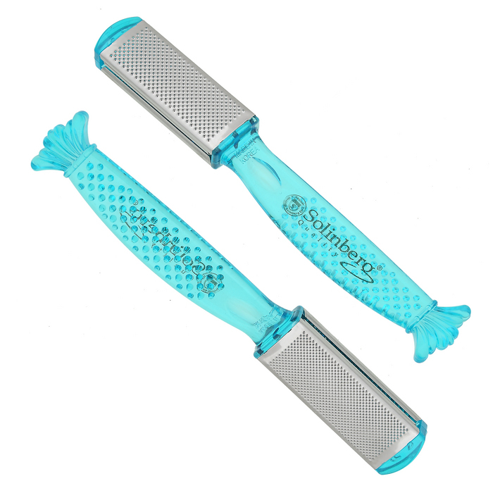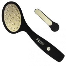 At the base of the laser foot file body is stainless steel. Most often the handle is made of rubberized plastic. Over the entire surface there are very small incisions, their height is less than 0.1 millimeter, which completely eliminates injury to healthy areas of the feet and nails. There are a lot of models on the modern market, you can choose among a variety of shapes and in accordance with the desired abrasive surface.