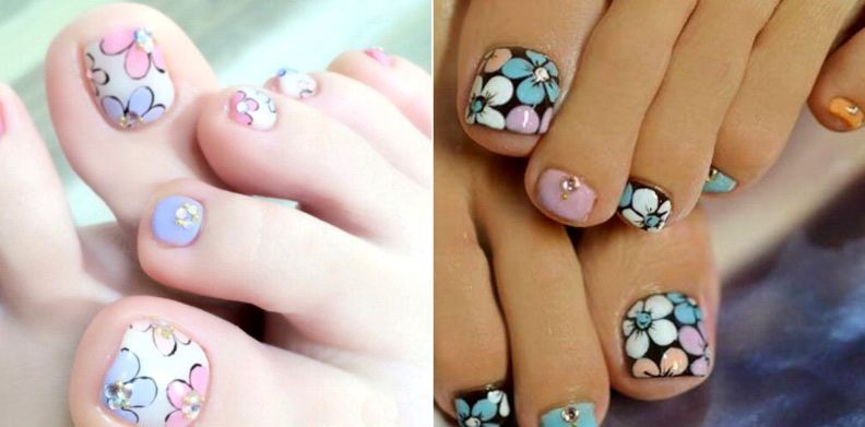 - A fairly simple technique for obtaining a floral design on the toenails is stamping. It is used both in salons and at home, because it requires a minimum of effort to create a high-quality pattern.