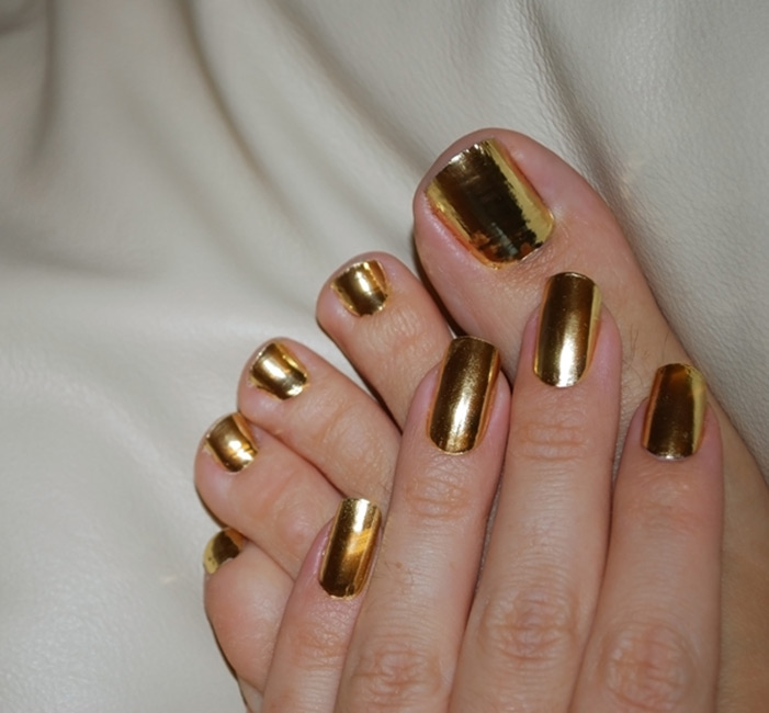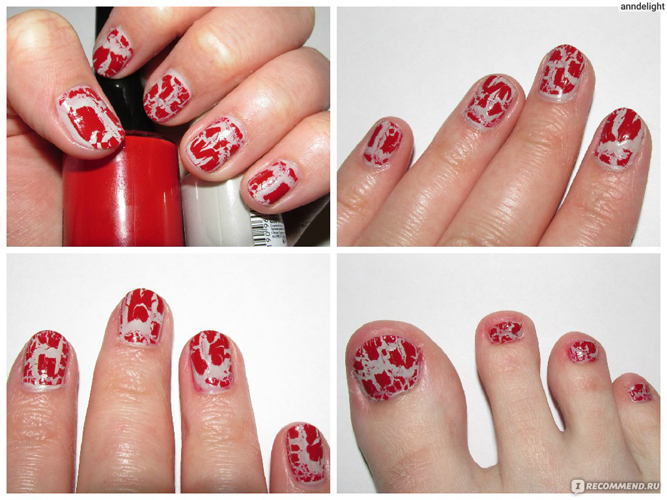 This varnish should be used to impart a snake effect, which will be obtained when applied to a black base. It should be noted that if you decide to decorate your nails with rhinestones or bright patterns, it is advisable to place them only on your hands or on your feet, otherwise a manicure-pedicure will look very glamorous or too outrageous.