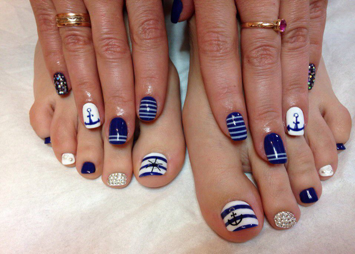 Summer nail design in the same style provides a variety of shapes, colors, combinations of various techniques of execution. The summer version of the color solution involves both very bright and pastel and very gentle tones. The main trend of summer manicure and pedicure is expressed in naturalness and naturalness. The original ideas of the nail covering, such as the image of various exotic fruits, drawings with palm trees, seascapes, pebbles, stripes and anchors are relevant.