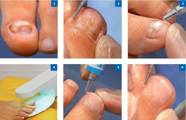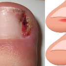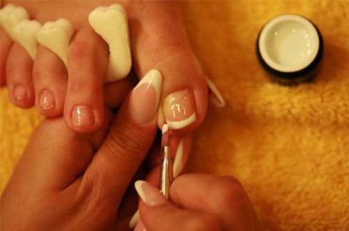 - The extension of the toenails gives an opportunity to get rid of such a problem as ingrown plate. If the nail plate is bent and can not boast an attractive appearance, you can apply acrylic or a special gel. Already a few days after the extension, the nails will acquire a healthy appearance, and the pain will completely disappear.