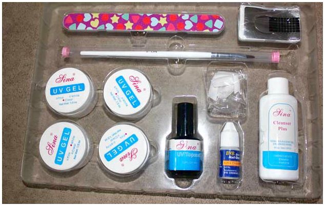 Any complete set for nails on the legs includes not only gel and acrylic powder, but also special forms for extension. It is necessary to apply them only if the natural nail differs in small length. In addition, some kits include nail tips, which are an artificial plate of a certain length.