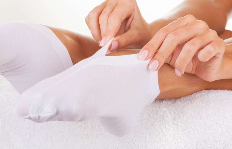 This means you just need to put on your feet and wear regular socks. After a while, you just need to wash it off with water. After that, the legs will look well-groomed, and will only make up the nails.