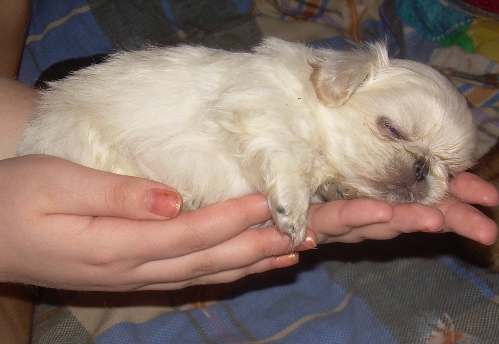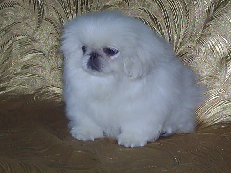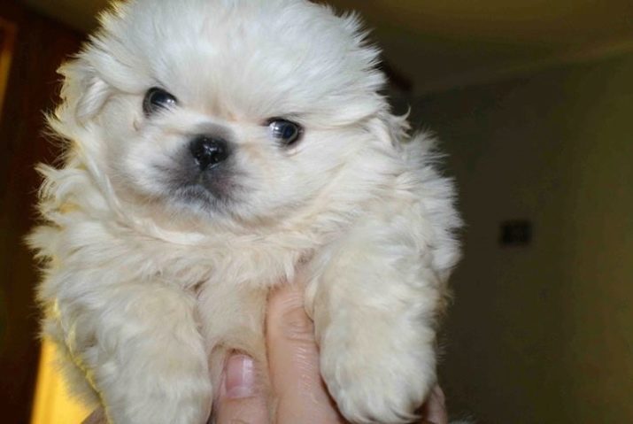 In the case when white dogs are crossed with other colors, one puppy in the litter may be white, but this will be an accident. In this case, the puppy is unlikely to have exactly the white color, but rather he will be warm and cream. Such puppies are often monochrome, and the muzzle does not differ from the general color. Such a dog, happened to snow-white, will give only white puppies in the offspring, the color lighter than itself. They can be creamy, light cream, white. Dilution of white Pekingese without pigmentation losses is possible in several generations.