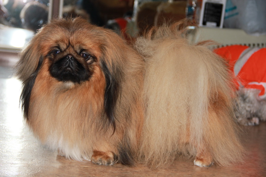 For breeding the royal Pekingese, decorative pet breeds were crossed with larger dogs. According to some legends, the progenitors of these miniature four-legged friends are lions, but you can hardly trust such information.