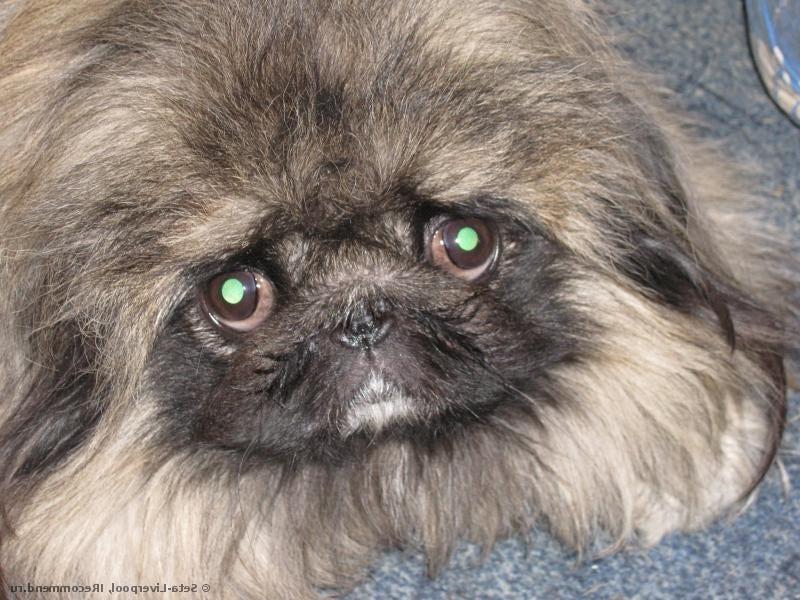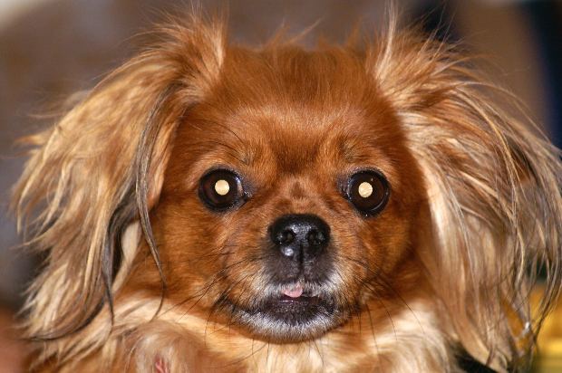 - The head of the dogs of this breed is very massive, with rather large eyes. They have a convex shape. This is a weak spot. Pekingese cannot injure the head. As a result of a blow from a pet, an eye may fall. This may happen for another reason. For example, as a result of a nervous breakdown or a strong overstrain.