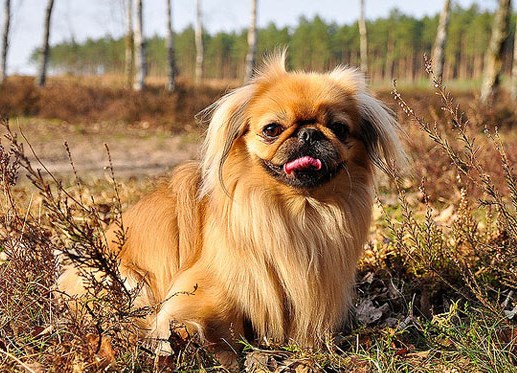 Pekingese looks quite extraordinary. A flattened nose, an unusual face, long hair make this dog look like a cub or a little monkey. And only a proud posture reminds us of belonging to a higher society.