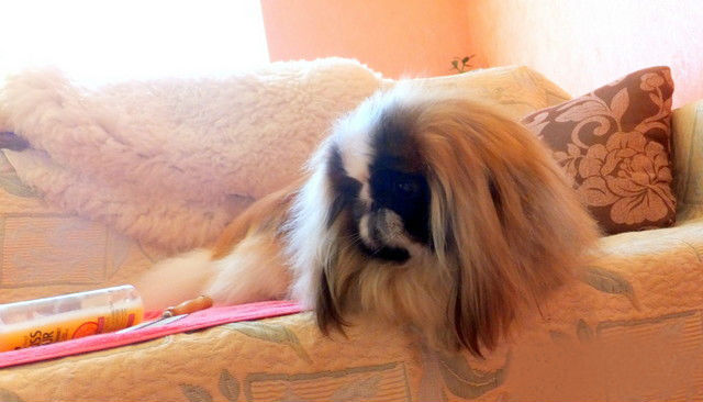 A very unpleasant, but necessary procedure for a dog is the cutting of claws (performed with special scissors).Usually the Pekingese take it easy. But if the pet is nervous, then ask for help from a veterinarian.