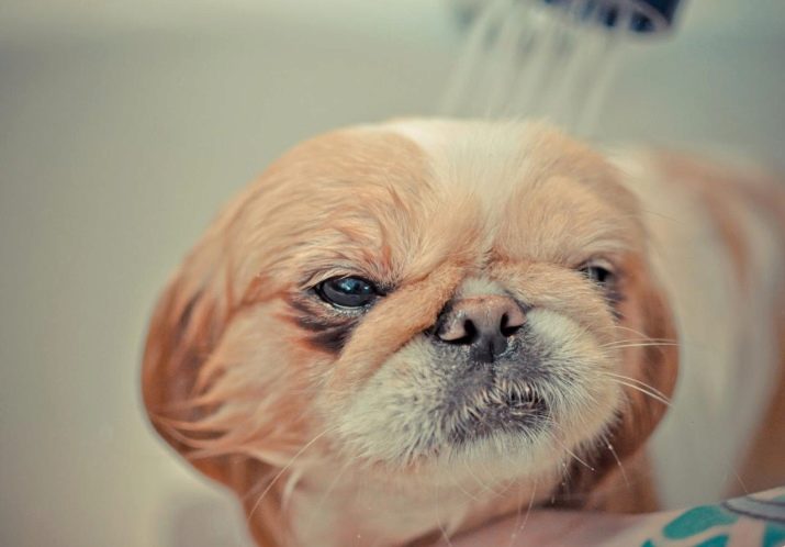And also the dog will need to bathe quite often. For water treatments should use special care cosmetics designed for long-haired dogs. Pekingese can be dried with a hair dryer, but the air flow must be directed in the direction of wool growth.