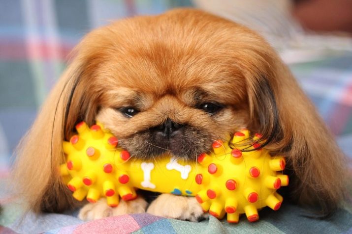 And also the animal will need several toys with which it will entertain itself independently in the absence of a person. For this not very mobile breed, it is recommended to buy several latex balls, as well as a pair of soft fabric toys. It is important that they do not contain small objects that the dog can tear off and swallow by negligence.