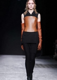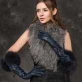 Winter glove models cover the arm to the elbow. They are sewn from artificial or natural leather, and from the inside they are insulated with a fur lining. There are such products smooth or in a fold.