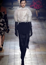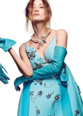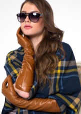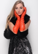 Women's long gloves are a warm and pleasant accessory, appropriate for a cool autumn and cold winter. The first thing that will ideally look with such gloves is a three-fourths shortened sleeve fur coat. Putting on a product with a fur coat, you can immediately replenish your image with hints of chic and grace. Elongated models are also perfect for a short-sleeved coat.