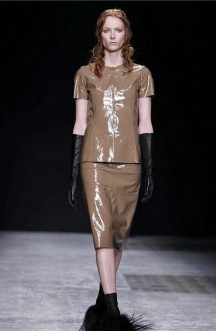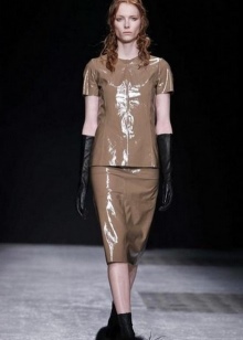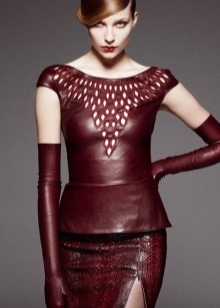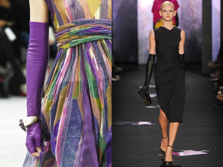 A lot of good things about the beauty and quality of the products of the Versace model house can be said by girls who are familiar with the products of this brand. In their new collections, Versace designers also paid attention to long leather gloves. One of the latest innovations is a model of deep purple hue with lilac inserts.