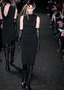 Clothing styles with which you can wear high models, a lot. First of all, it is a classic style that is loved by many, suitable not only for work, but also for walking. Do not despair and casual lovers - gloves are quite acceptable with sneakers and wedges. Rock and grunge can also be perfectly complemented by elongated models, as well as gentle baby dollars. Well, having decided to create a retro image, you will surely be surrounded by the attention of others.