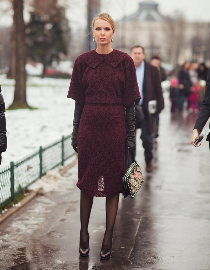 Outerwear or dress is better to pick up in more soothing colors to maintain a balance. But other accessories, such as a handbag, scarf, glasses, choose the color of gloves.