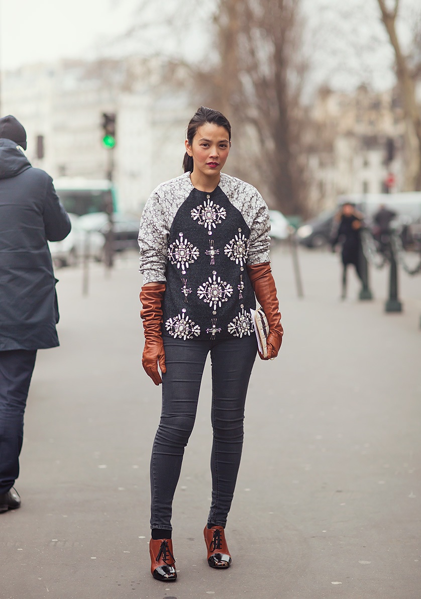 Even gloves successfully worn under the classic blazers, turtlenecks, wool sweaters.