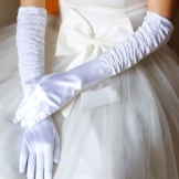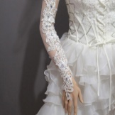 - Wedding. There are classic models, up to or above the elbow, often stitched from satin fabric. There are long gloves made of lace. They look very elegant and elegant. They can be presented in the form of mitts - without fingers.