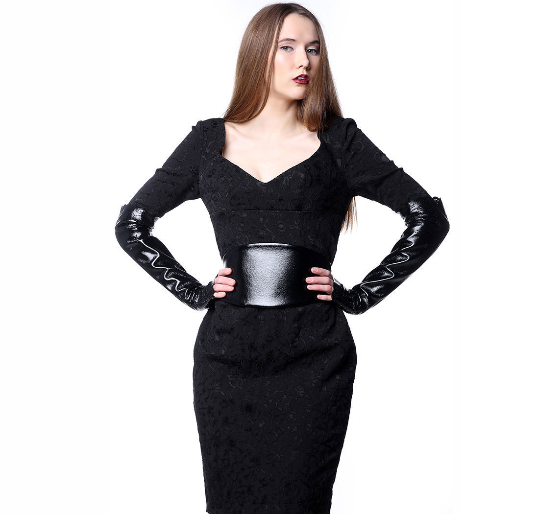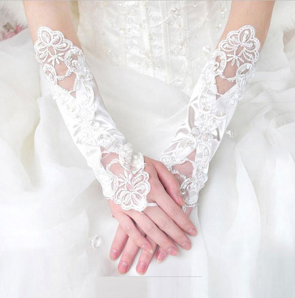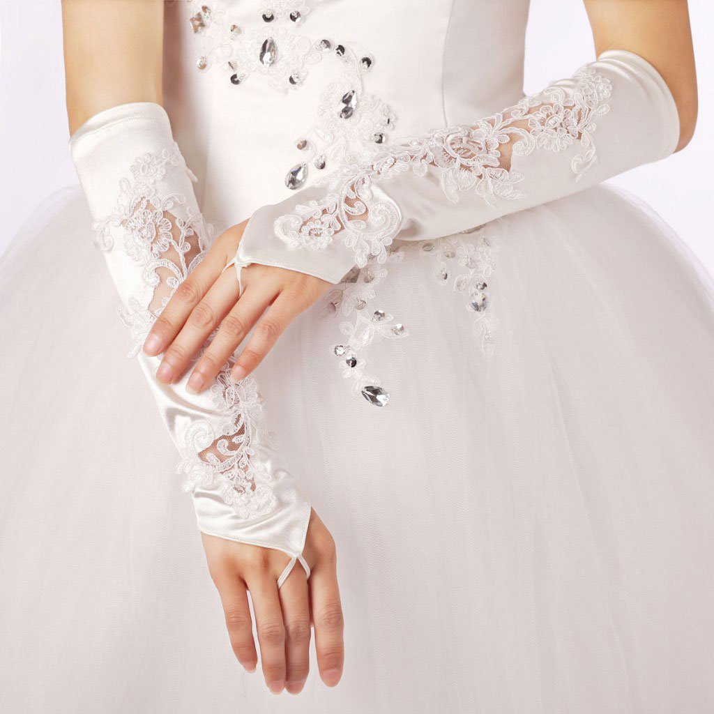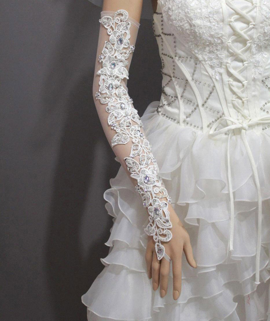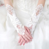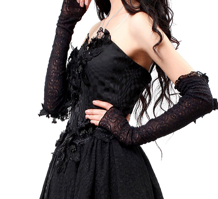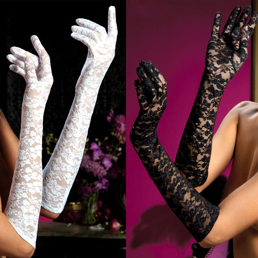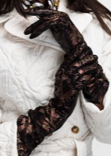 - Long lace Gloves look very attractive and elegant. Classic black gloves, made of noble lace, add mystery to the image. Snow-white lace gloves will make the image of the bride complete. Openwork long fingerless gloves will look good with a summer dress and evening dress.
