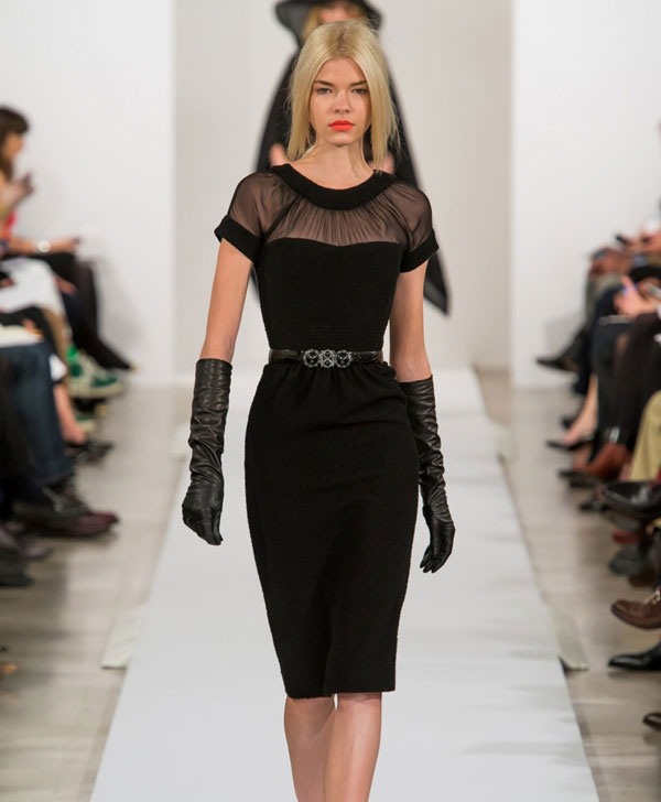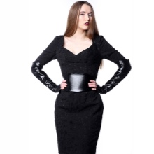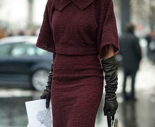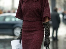 Gloves made of lace or velvet will easily turn a cocktail dress into an outfit, but remember that these fabrics add volume. And the dark and dull colors of such gloves hide it.