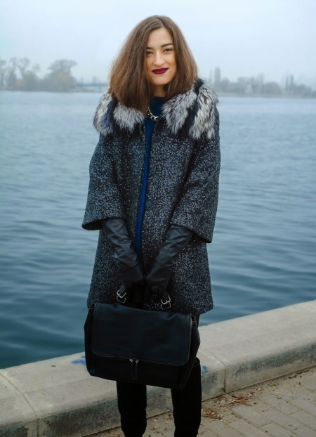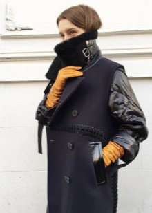 A coat with a short, shortened or 7/8 sleeve suggests a choice of long gloves. Choosing leather models, we get a feminine look. When choosing a combination or knitted gloves, you get a bold and piquant image. Thanks to such accessories, the tendency to wear large bracelets over long gloves has returned.
