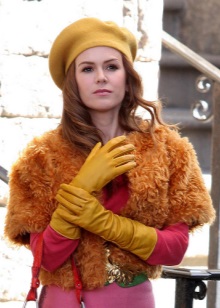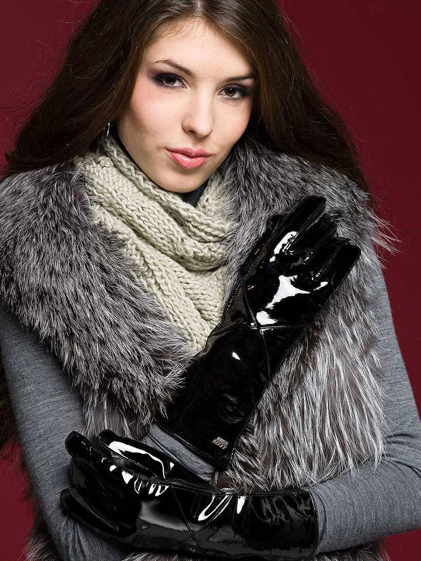 Lacquered gloves look very stylish. It is better to choose a model on a silk lining, because the patent leather itself keeps heat well. Any pretentious look will be well complemented with varnished long gloves.