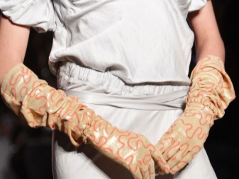 - Brilliant. Long models of gloves, made of shiny materials, can perfectly complement evening wear.