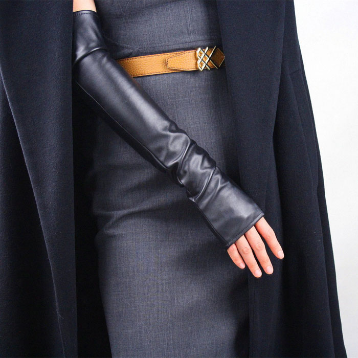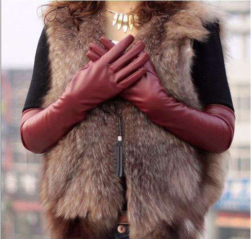 Suede would be an excellent alternative to leather. Suede long gloves always look expensive and luxurious. When choosing long gloves for a fur coat, try to create a light and intriguing look.