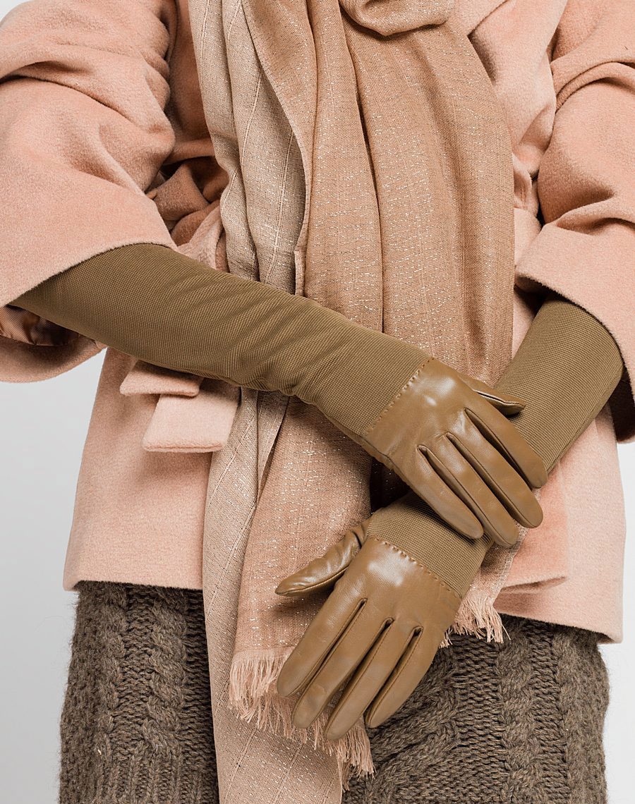 Long gloves are a very practical accessory for our weather. They protect women's hands well from the cold, especially if the outerwear has wide sleeves or sleeves ¾. Long gloves can be worn to the maximum by covering the arms or to make an accordion from the elbow to the wrist.