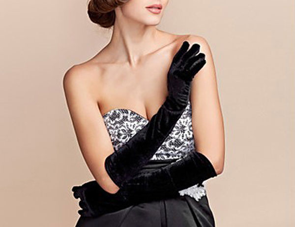 - Velvet Long gloves will add special grace to women's hands. The texture of velvet looks very elegant and gives solidity to all along.