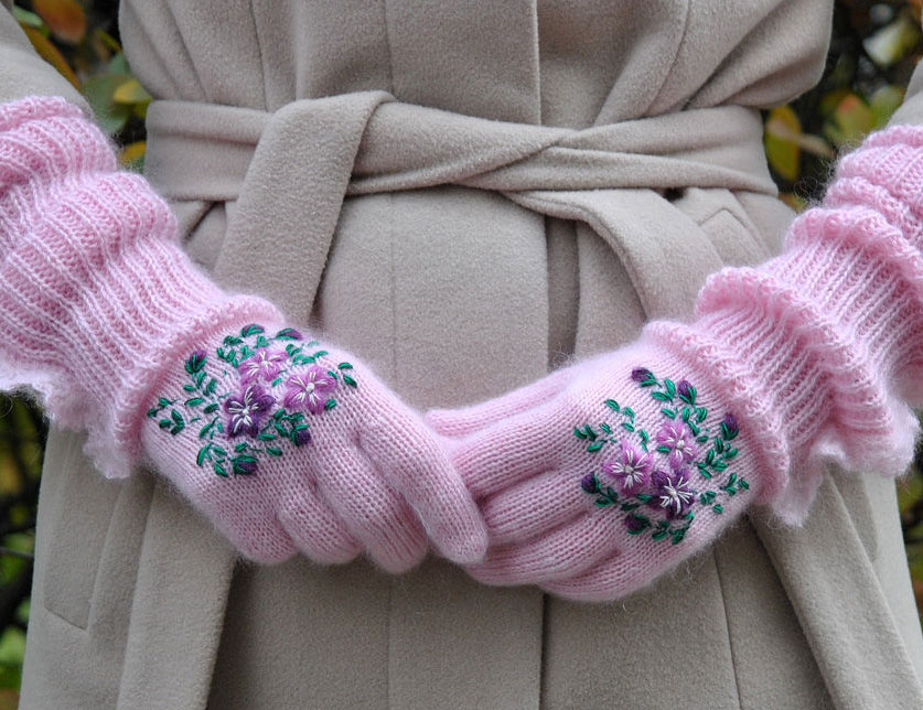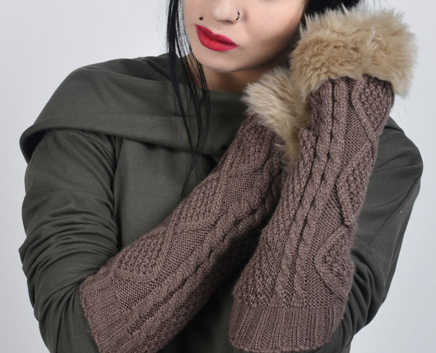 - High knitted. Beautiful, warm and practical model. May be from thin knitwear or more dense. Knitted gloves can also be fingerless.