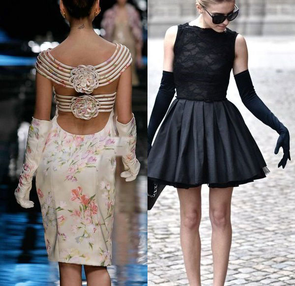For a sleeveless model or a dress with a deep neckline, it is better to choose long gloves that fit well on the arm. The result will be a sensual evening look.