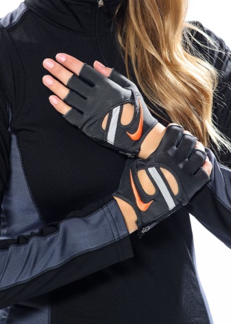 - Fitness gloves from Nike are not cheap, the amount reaches 1500 rubles per pair. This brand produces mainly athletic models of women's and men's gloves. Many of them are presented in the unisex version, which allows you to share gloves with your soulmate. Almost all models of Nike gloves have a suede insert inside that absorbs moisture and fixes the hand well. It is important to note the fineness of the gloves, they almost do not feel that something is wearing on their hands.
