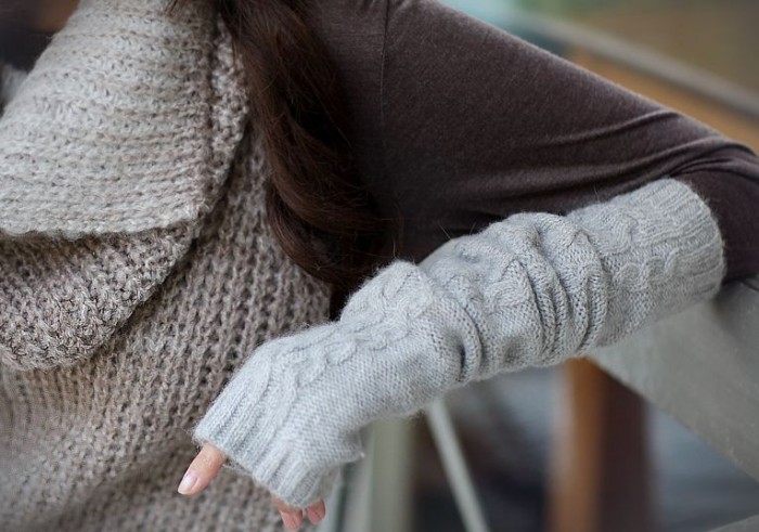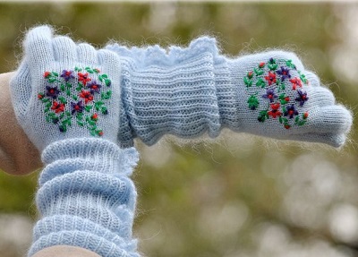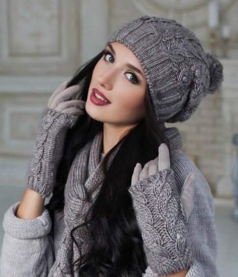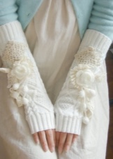 Knitted gloves do not just look beautiful. In the cold season they are still warm and comfortable. Yes, and wear something that is connected by a loved one or the girl herself is doubly enjoyable. This option can perfectly complement almost any image.