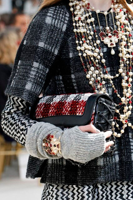 Prada offers girls elegant long accessories from coarse yarn. Chanel brand can offer something similar. True, the latest models of the French company have lost a little in elegance due to the fact that they have become quite massive due to the large mating.