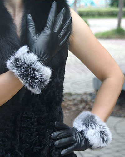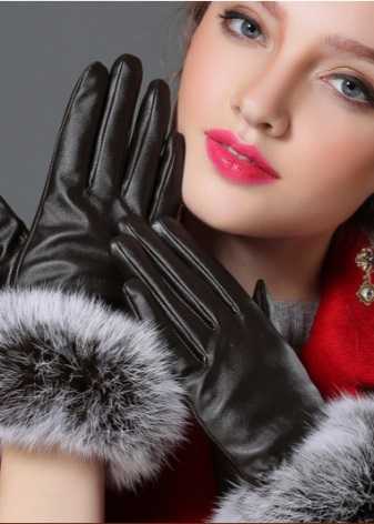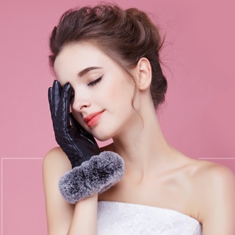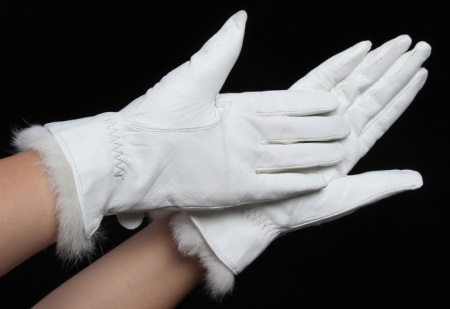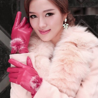 - Gloves with a fur lining - the warmest option and the most expensive. On the fur products are in great demand due to effective heat retention. Basically gloves are made on the fur of a rabbit, deer, on a sheepskin. With fur lining accessories will last more than one season.