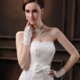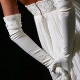 Very often gloves include a wedding dress. As a rule, they are already bundled, so the bride does not have any particular problems with the choice of this accessory. But still, if you want to complement the gloves with a festive ensemble in which they are absent, then you should try to make the entire wedding bow be harmonious and beautiful. Pay attention to the lace patterns of mitts with a loop for the middle finger - in such gloves it will be convenient to put a ring on your finger and hold the bridal bouquet.