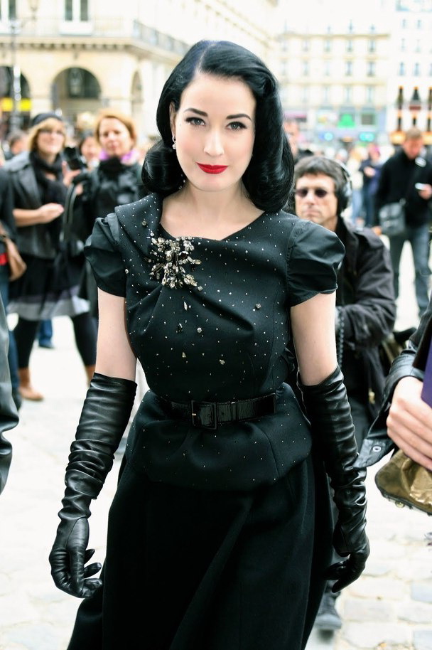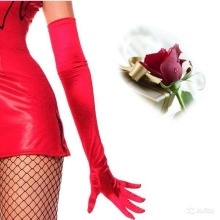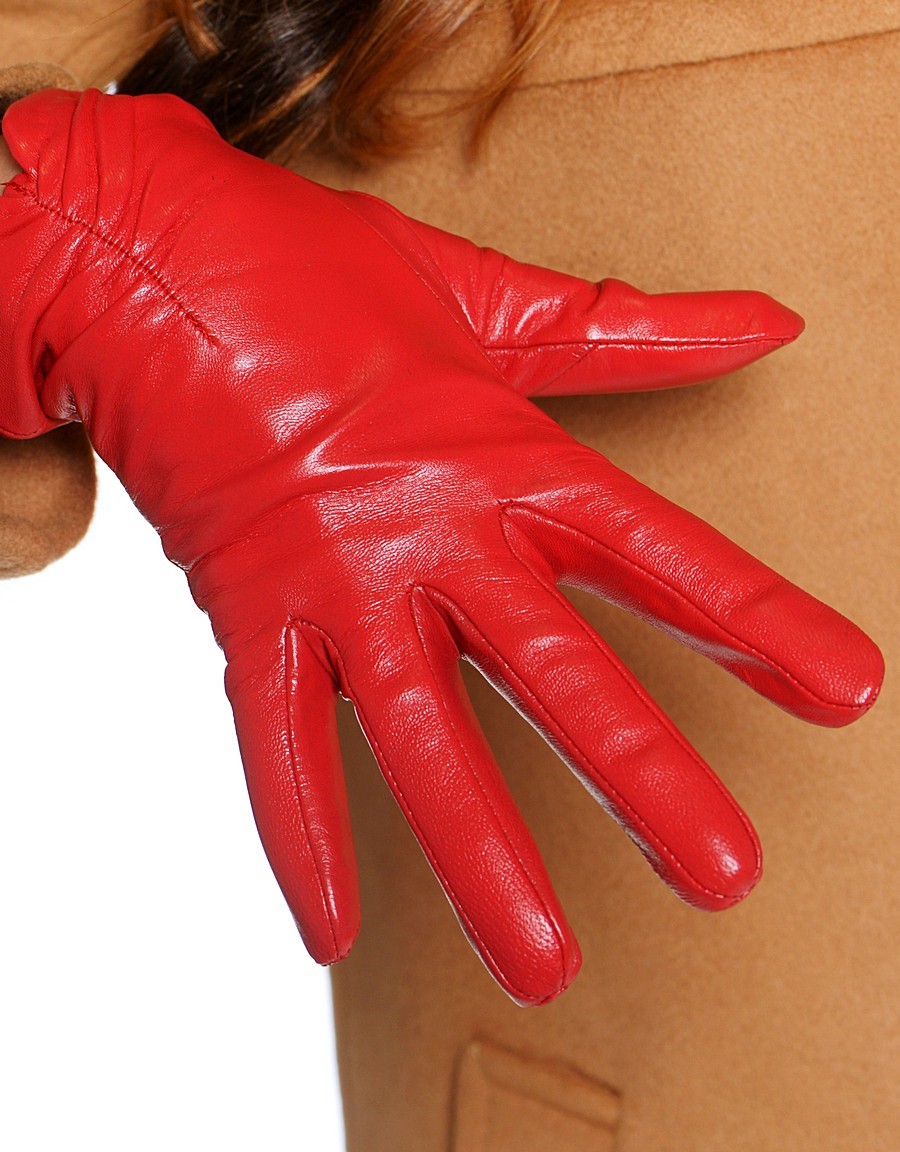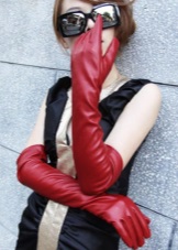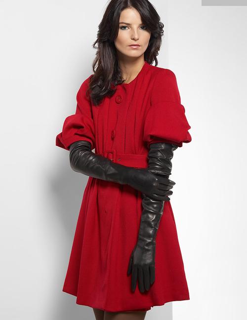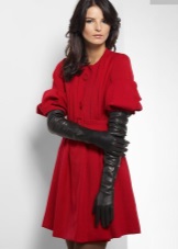 Unusually bright and stylish red long gloves look, complementing the image with a black coat with a short sleeve. Having added a hat to the image of the same color, you will stand out from the crowd and present yourself to others from the most favorable side.