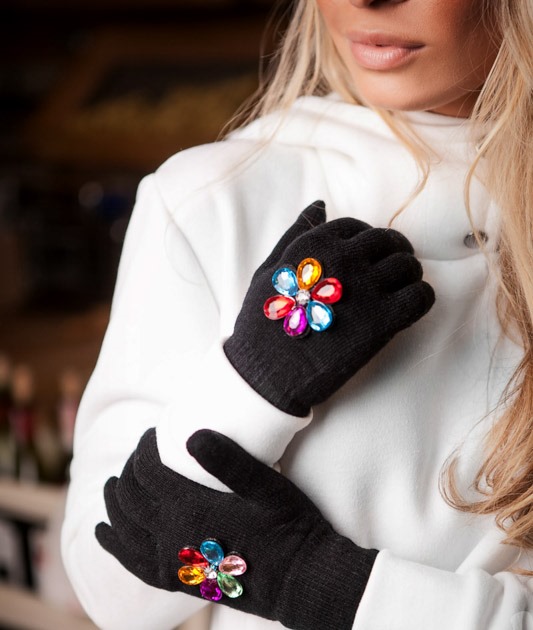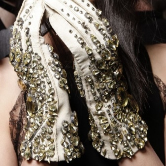 The flight of design ideas with each new season more and more makes fashionistas happy, giving them gloves with the most unimaginable trim. In the latest collections you can find models that are decorated with beads and beads, embroidery and tanning. Gloves with rhinestones and pom-poms are also popular - in this combination any model will attract attention and will be a bright accent of any image.